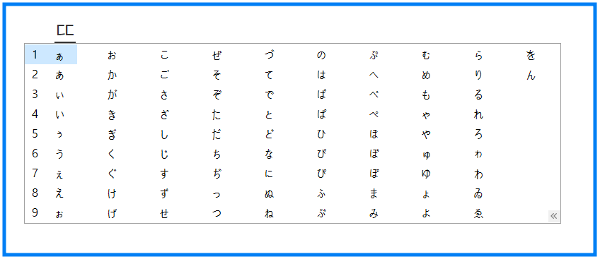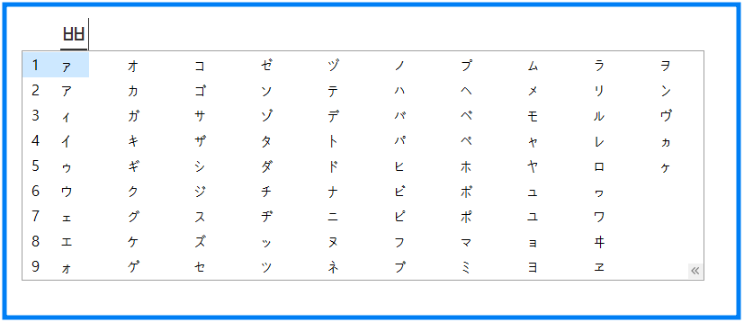 ゠ァアィイゥウェエォオカガキギクグケゲコゴサザシジスズセゼソゾタダチヂッツヅテデトドナニヌネ