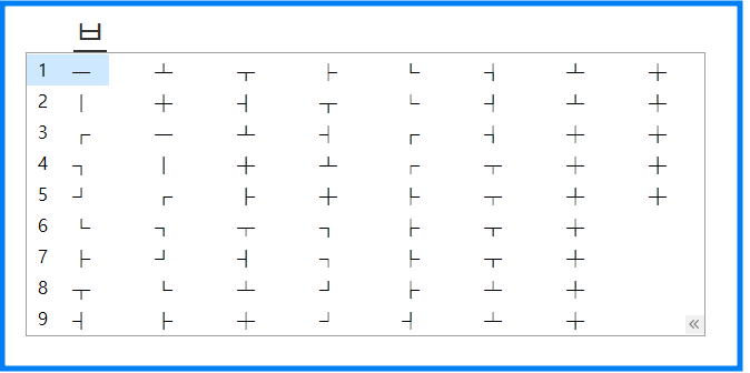 ⑤ ' ㅂ ' 키로 입력할 수 있는 특수기호(선 긋기)