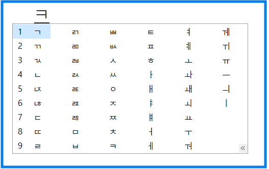 ⑨ ' ㅋ ' 키로 입력할 수 있는 특수기호(한글 자모음)
