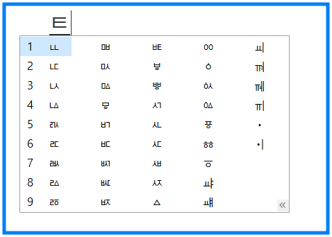 2. 한글 자음 + 오른쪽 컨트롤(Ctrl)키 + Tab
