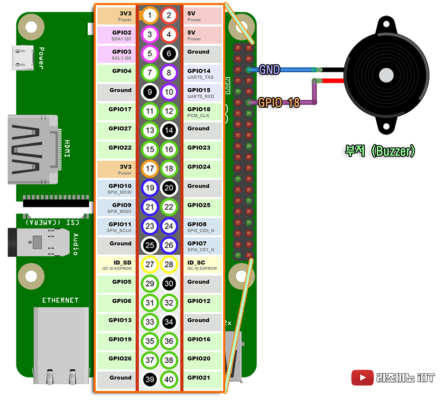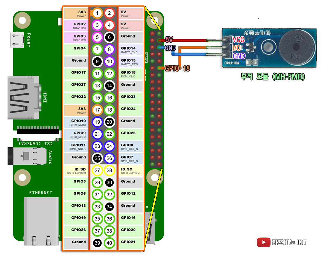 4. 라즈베리파이+부저 연결도 (실습을 위한 연결 도면)