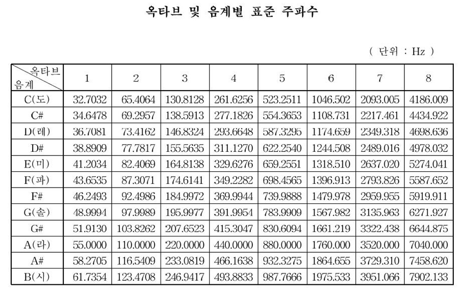2. 소리와 주파수 (음계 별 표준 주파수)