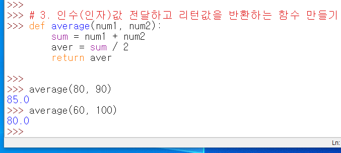 - def '함수명( )' 은 사용자 정의 함수입니다.
