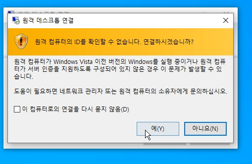 아래 이미지와 같은 메시지가 뜨면 예(Y)를 클릭합니다.