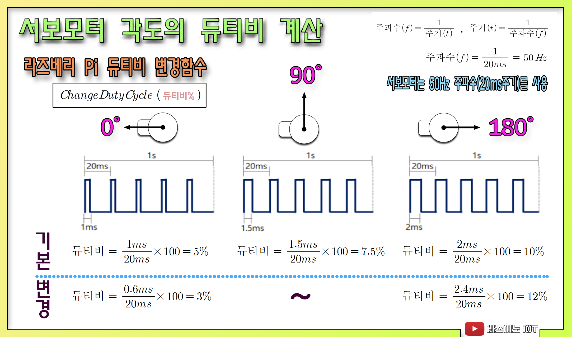 - 1ms는 20ms 신호 주기의 5%에 해당됩니다.
