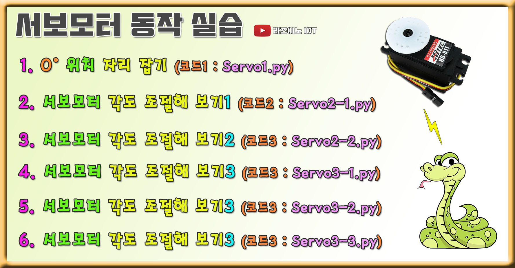 서보 모터는 다양한 곳에 활용하기 좋은 부품이기에, 이번 영상을 학습해 두면, 많은 도움이 되리라 생각됩니다.
