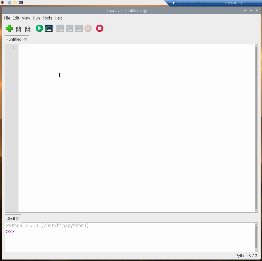 네, 라즈베리 pi로 접속이 잘 된 것을 볼 수 있는데요, 먼저, 파이썬 코드를 작성할 텐데요, 파이썬 코드 작성은 선호하는 편집기나 혹은 메모장으로 작성해도 되는데요, 여기서는 라즈비안OS에 기본 내장된 Thonny Python IDE를 사용해 보겠습니다.