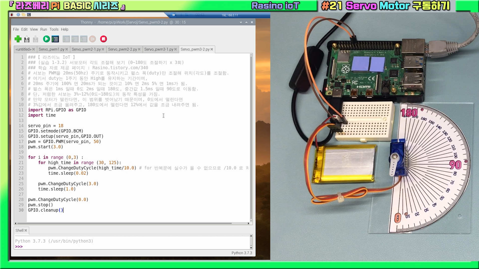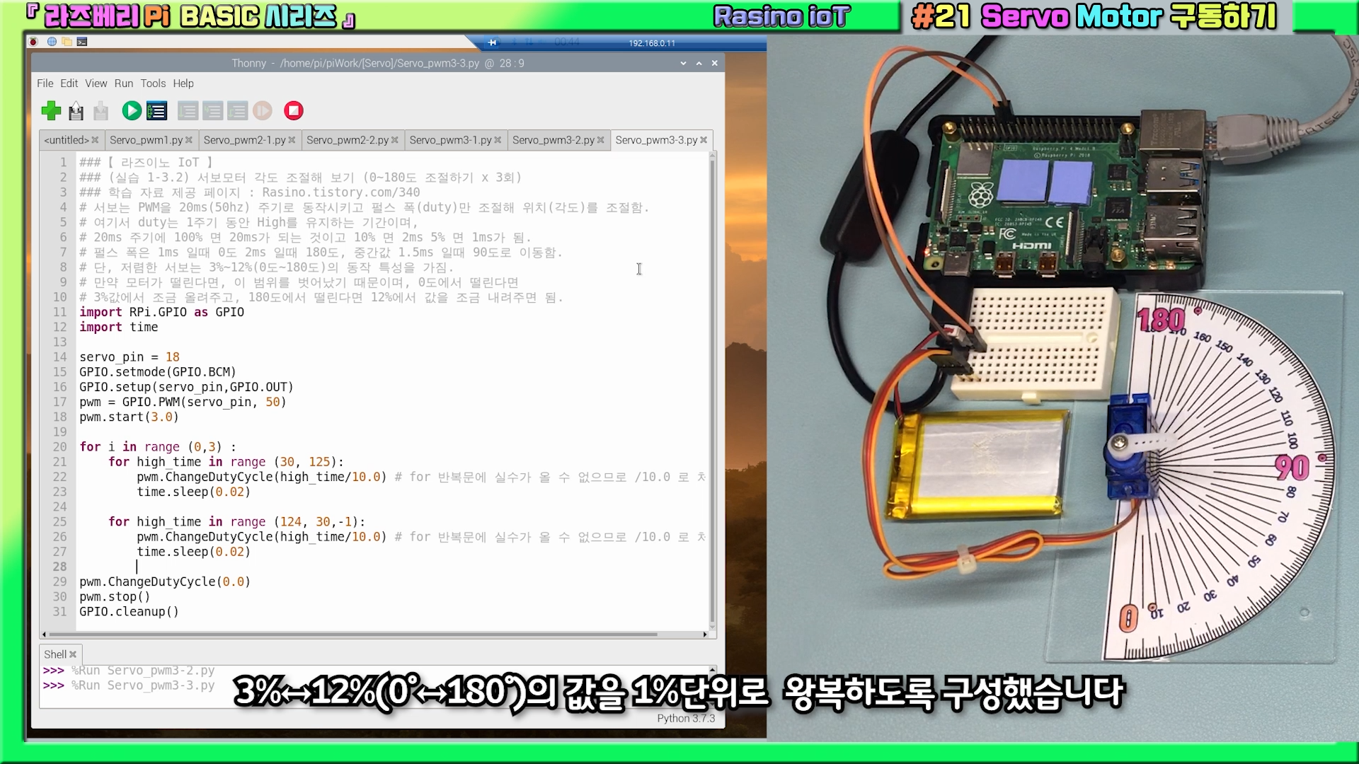 【라즈베리Pi#21】 서보(Servo) 모터 제어하기! with (파이썬 코드)