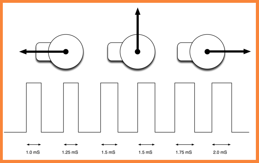그래서, 1ms~2ms의 신호 범위로 0˚~180˚의 각도를 조절하게 됩니다.