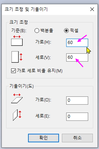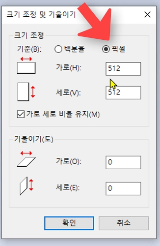 만약 '가로 세로 비율 유지' 체크를 해제하면, 가로 세로 크기를 각각 설정할 수 있습니다.