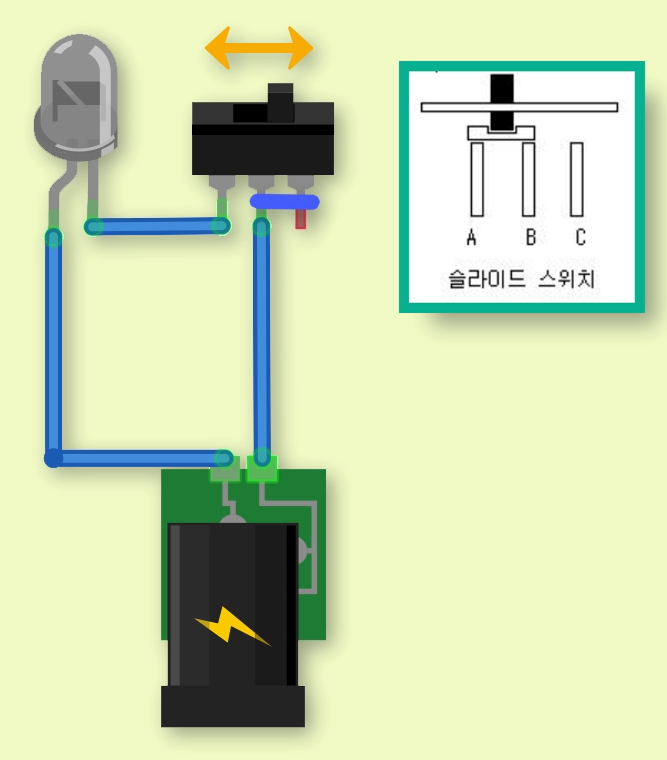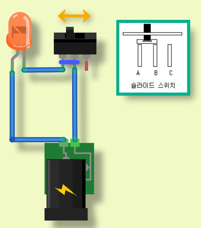 회로를 만들 때 기본적으로 회로의 전원을 켜고 끌 수 있도록 스위치를 달아주면 좋습니다. 하지만 스위치와 터미널 단자가 반드시 있어야 하는 것은 아니니, 재료를 준비하지 못했다면 제외하고 제작해도 됩니다.