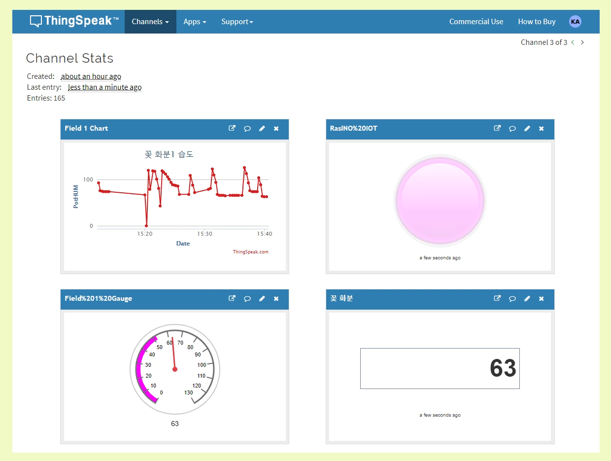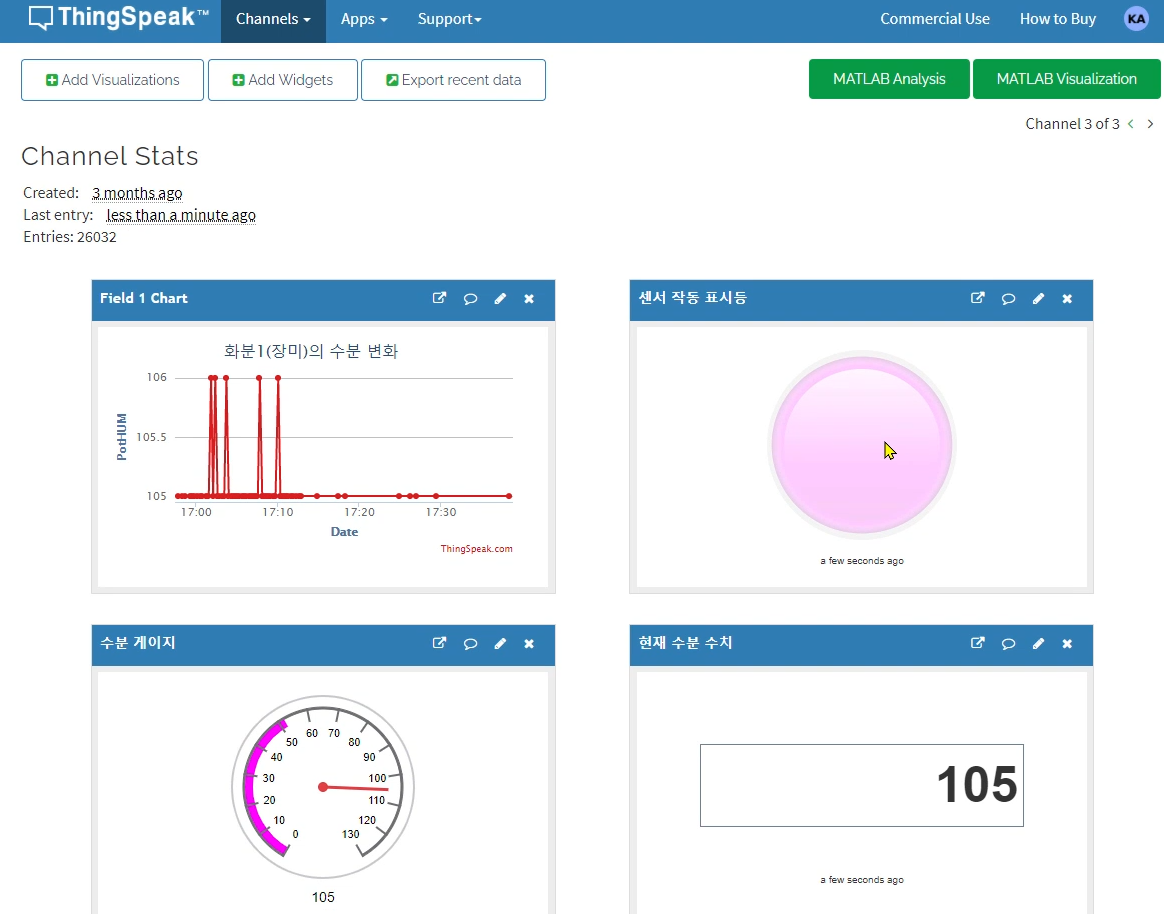 아울러, ThingSpeak 앱을 연결하여 활용성을 높일 수 있습니다.