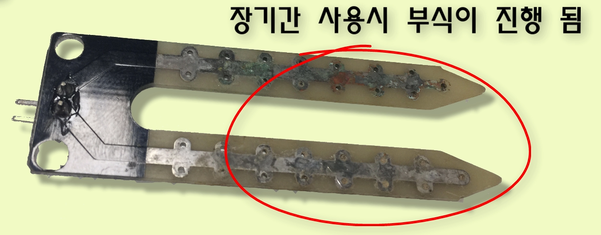 화분에 직접 삽입되는 센서의 회로 부분이 외부에 노출되어 있어