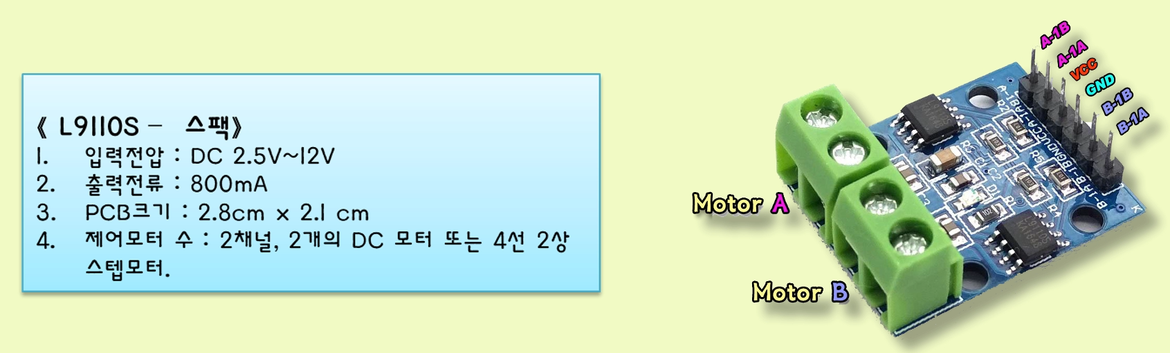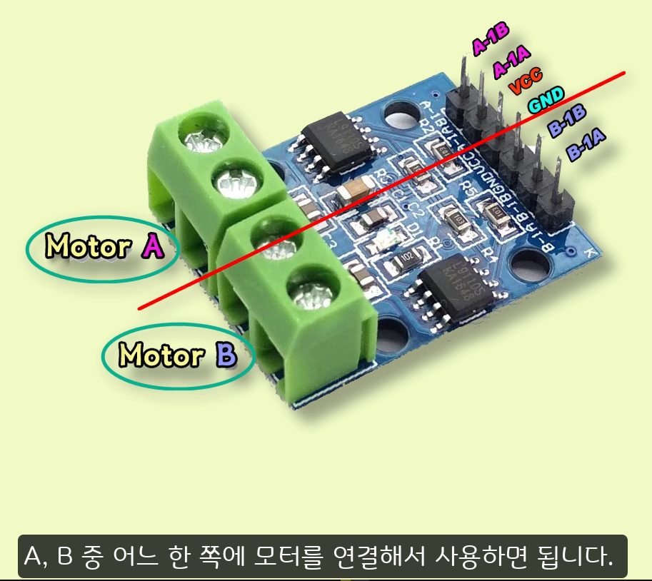 이럴 때, 전원을 분리 공급해 줄 수 있는 릴레이 모듈을 사용하거나, L9110S나, L298N 모듈처럼, 출력을 증폭시켜 줄 모터 드라이버 모듈을 사용하게 됩니다.