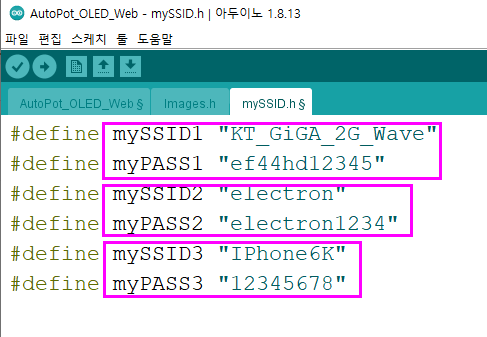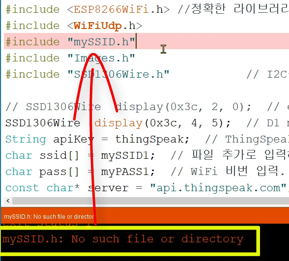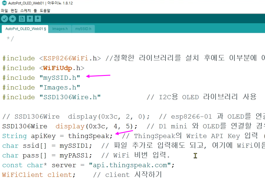 아래처럼, thingspeak 이용을 위한 내용을 넣어 주어야 합니다