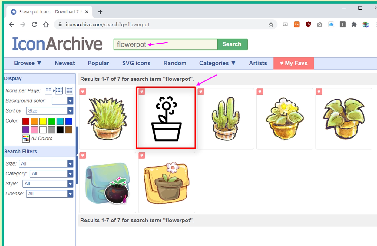 여기서는 화면에 보이는 '꽃화분' 이미지를 다운로드 받아 보세요. 검책창에 'flowerpot'으로 검색합니다.