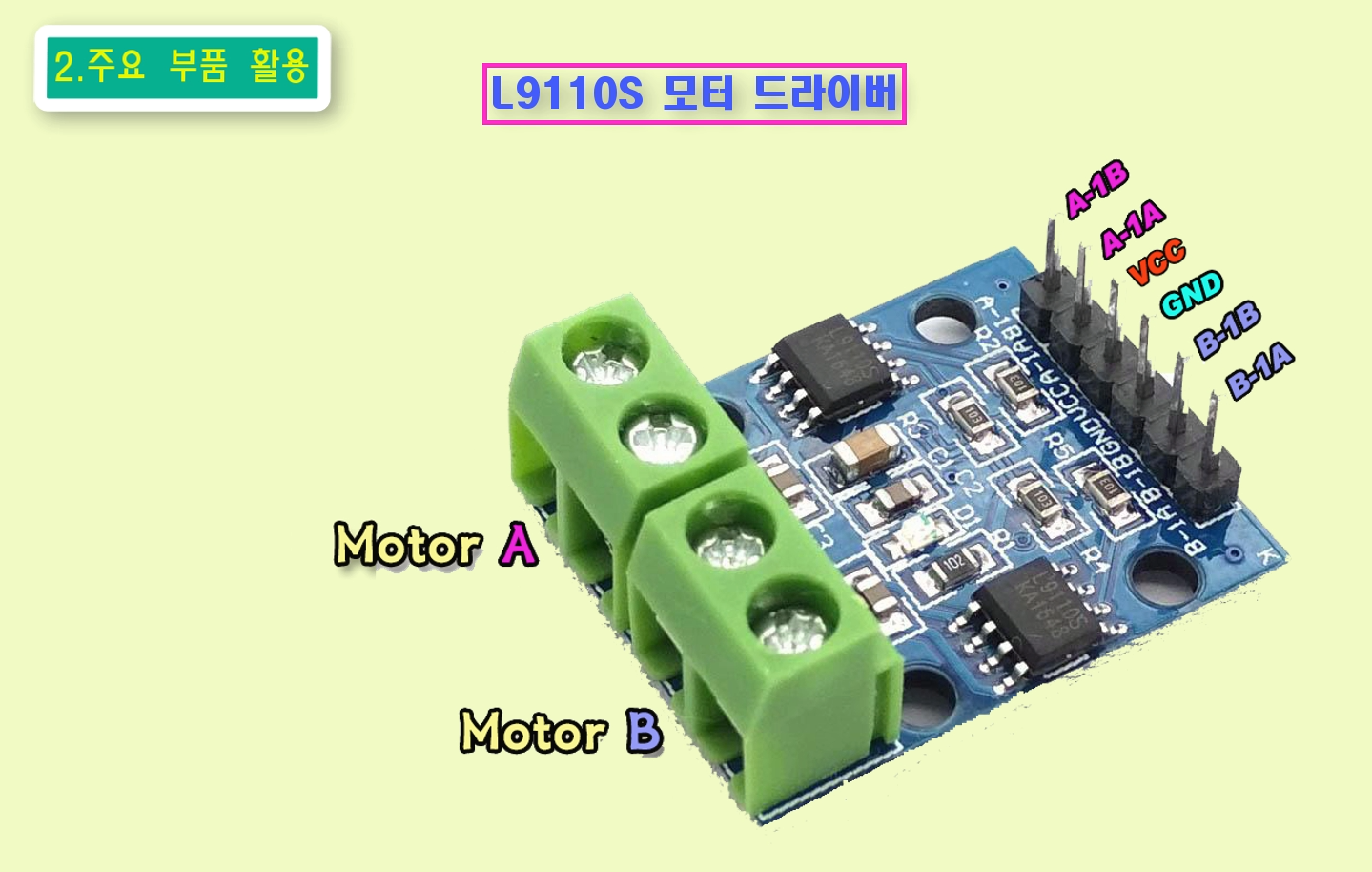 L9110S H-Bridge 모터 드라이버 모듈입니다.