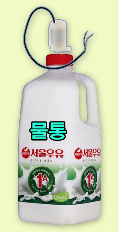 물통으로는 어떤 것이든 괜찮지만, 엎질러질 것을 감안해 뚜껑을 닫을 수 있는 것이 좋으며 수중 펌프 모터를 사용한다면, 구하기도 쉽고 입구를 쉽게 통과하는 '1.8L 우유통'으로 선택해 보세요. 기타 부품으로는 회로의 연결을 도와줄 작은 사이즈의 브레드 보드가 필요하고요, 터미널 단자는 배터리 소켓의 전선처럼 단단하지 않은 흐물흐물한 연선을 브레드 보드에 꽂으려 할 때 사용하면 편리합니다.