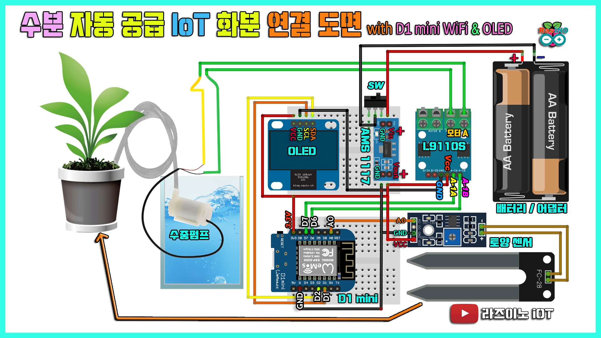 WiFi 기능이 있는 D1 mini 를 사용한 스마트 화분을 만들어 볼게요.