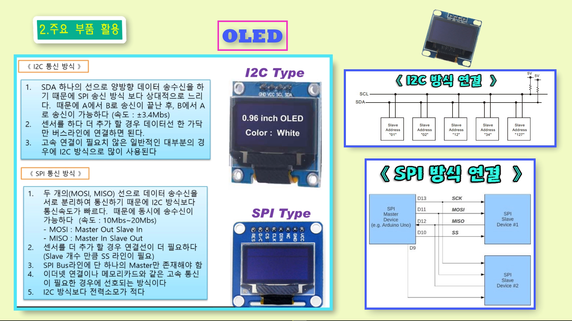 【 아두이노모듈#29】 OLED 처음 사용 설명서 #1 (SPI, I2C 주요 5종 사용법 안내)