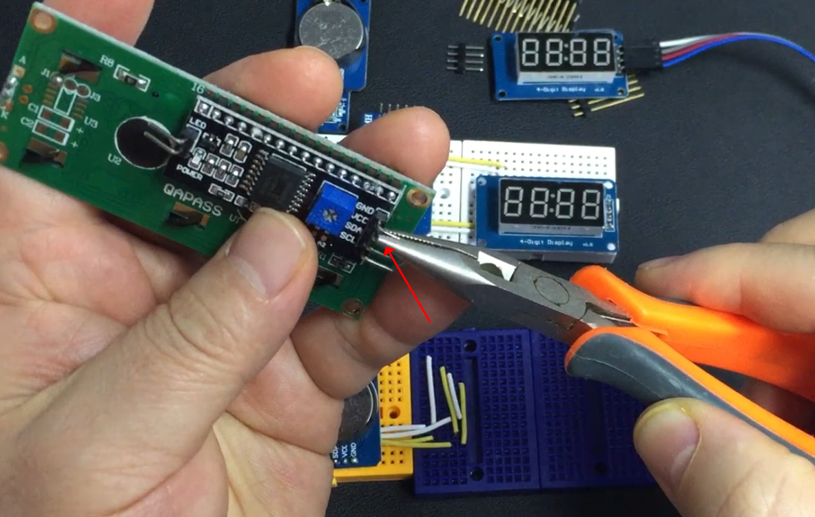 TM1637 또한 그냥 연결해도 되지만 기존 핀을 제거하고 보기 좋게 밀착시켜 볼게요.