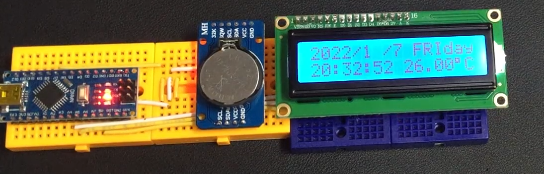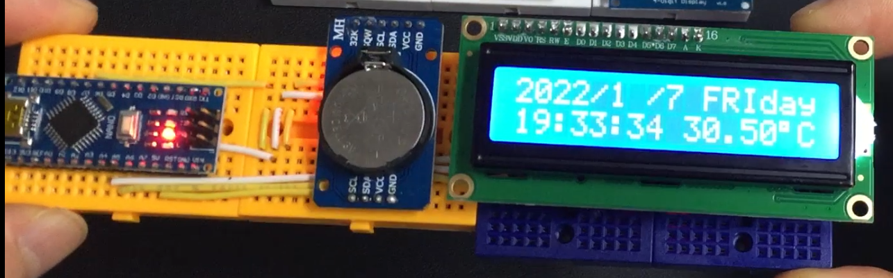 두 번째로 LCD 액정 디스플레이를 이용해서 시간 온도뿐 아니라 날짜와 요일까지 모두 표시할 수 있는 장치를 만들어 볼게요.