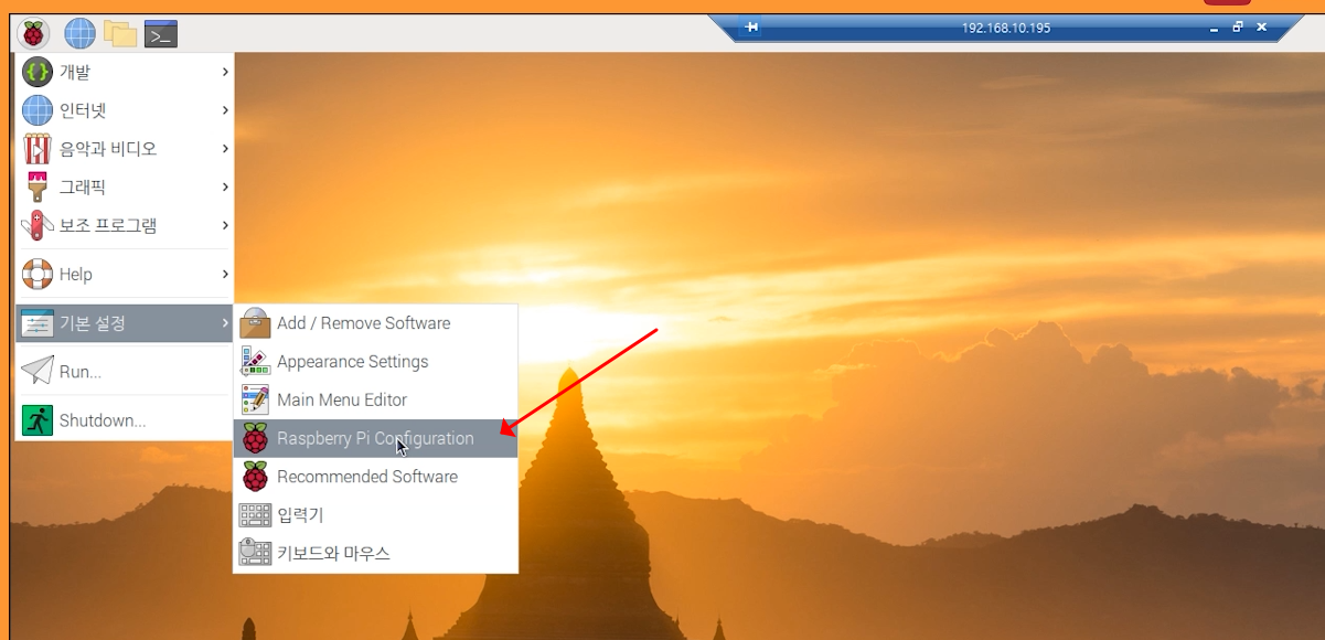 부팅이 완료되면, Raspberry Pi Configuration (환경설정) 메뉴로 들어갑니다.
