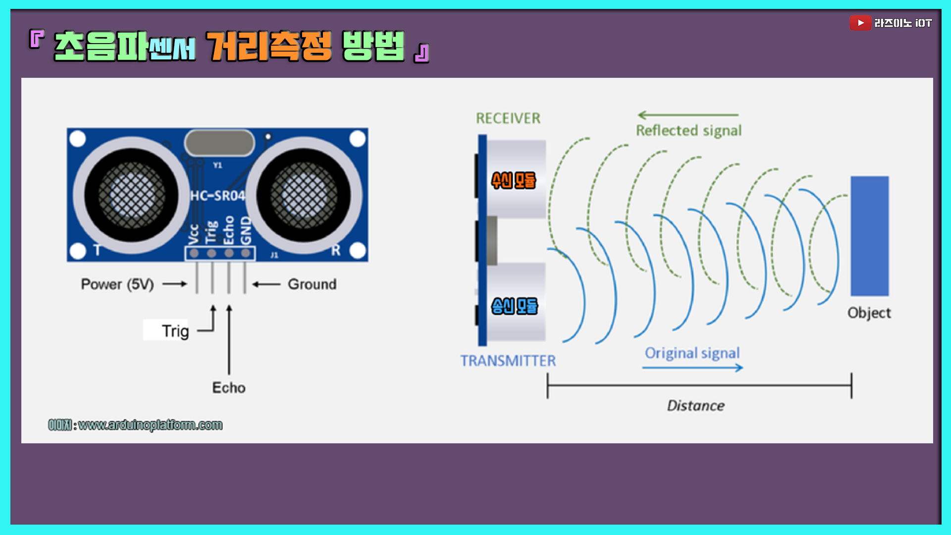 그럼, 초음파 센서를 통하여 거리 측정하는 원리를 간단히 설명해 보겠습니다.