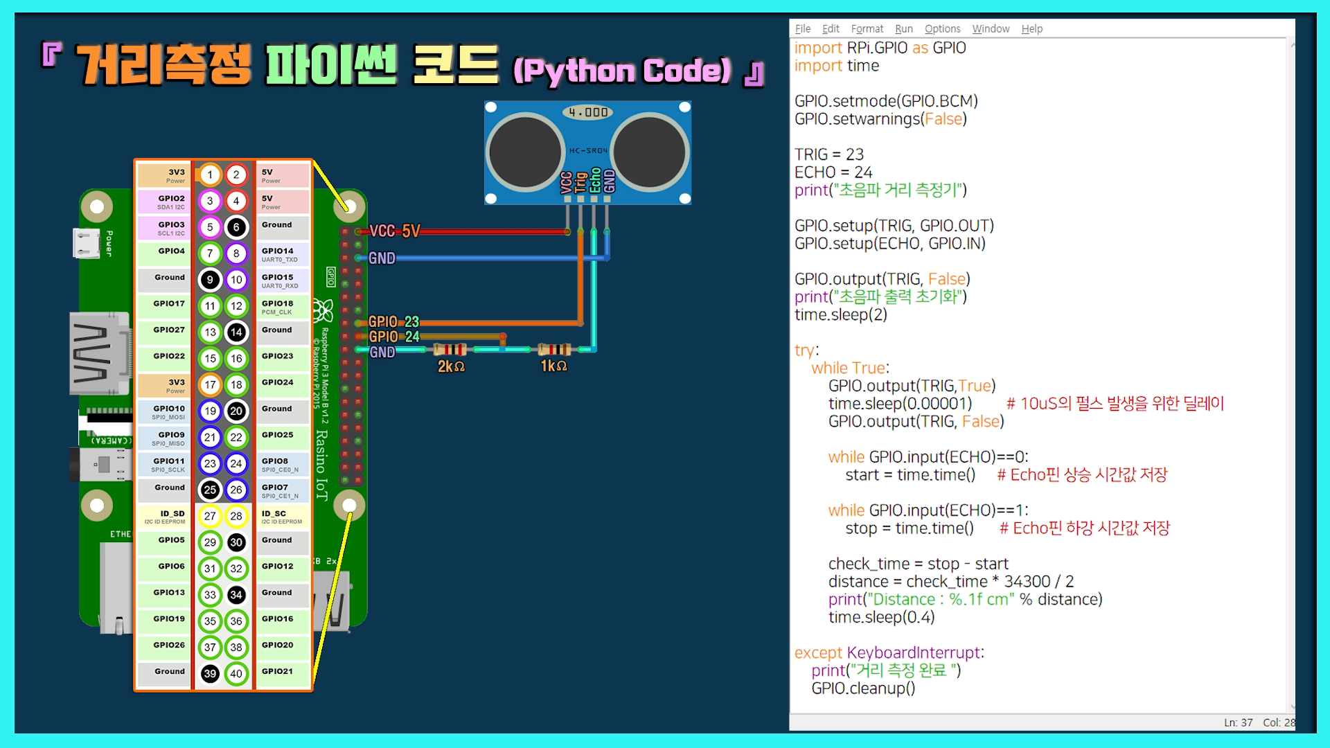 코드는 파이썬으로 하고, "거리 측정기"를 예시로 진행해 보겠습니다.