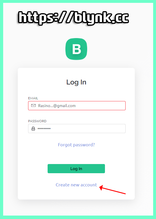 1. 그럼, Blynk.CC 사이트에서 메일 주소로 간단히 회원 가입을 하세요.