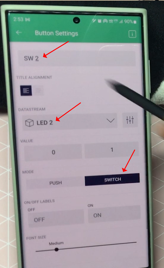 Switch 2 이름과 DataStream을 → LED 2 (5번 Pin)로 바꾸어 주면 됩니다.