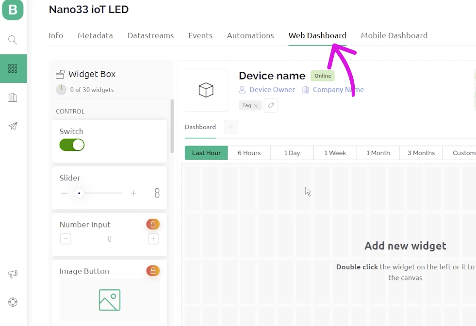 이제 Web Dashboard에서 컨트롤 패널을 만들어 주면 됩니다.