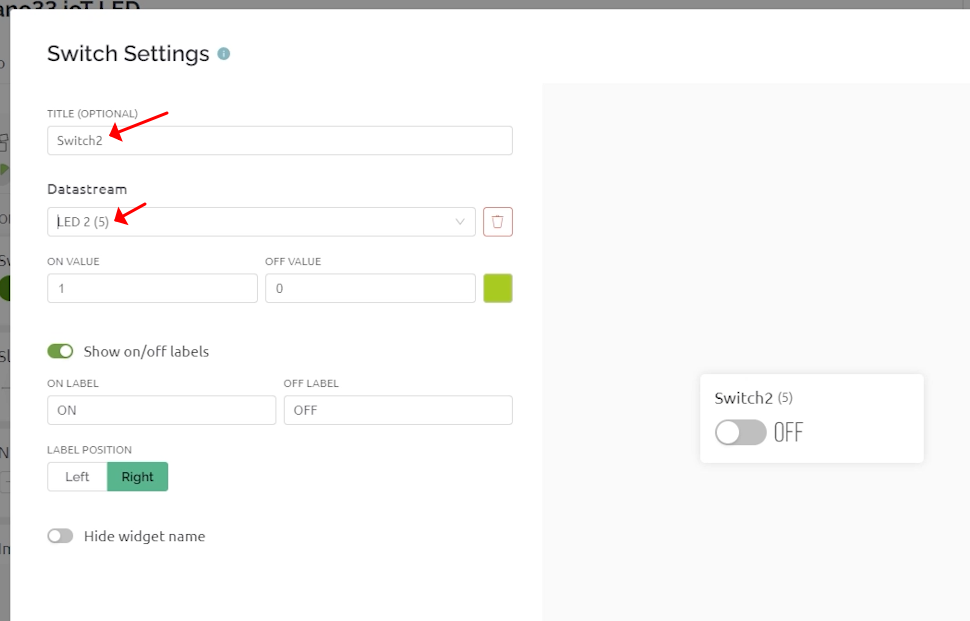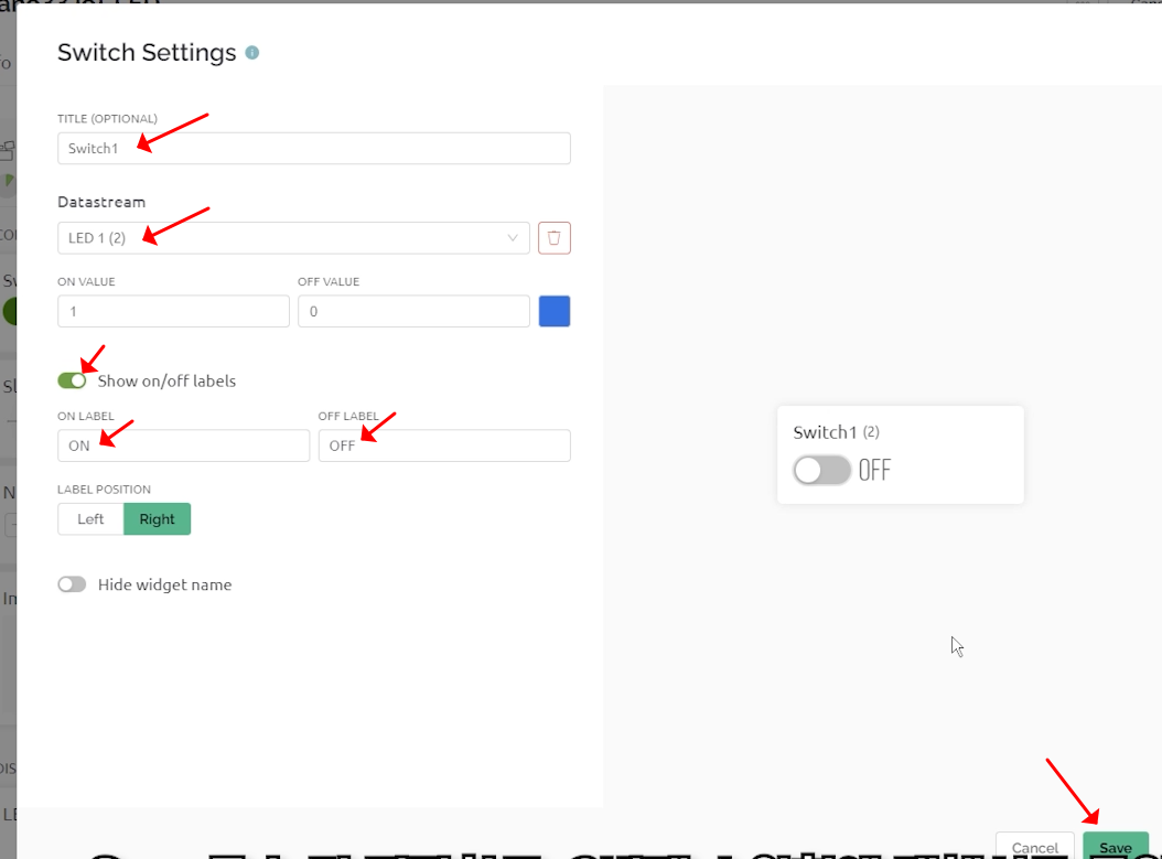 Save를 눌러 저장하고, 2번째 스위치에 대해서도 동일하게 진행하면 되는데요, 이번에는 좀 더 간편하게, 이미 만들어진 스위치 위젯을 복사하여 사용해 볼게요.