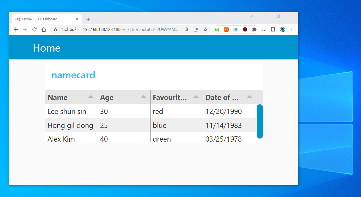 물론 같은 WiFi망 혹은 내부 네트워크에서 접속하는 것이라면, 아래처럼, 윈도 PC에서 라즈베리파이 주소를 입력하면 Node-RED 편집화면에 접속하여 실행시킬 수 있습니다. ( 예시, http://192.168.138.130:1880/ )
