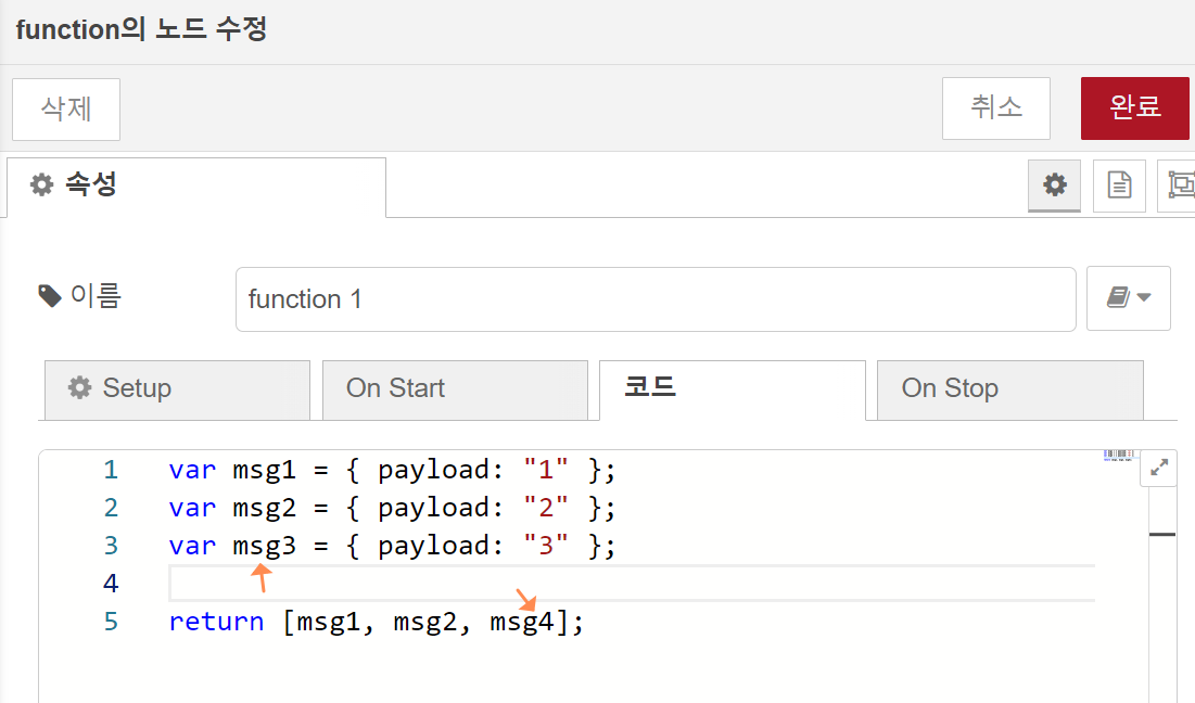 Function 노드 내용 :