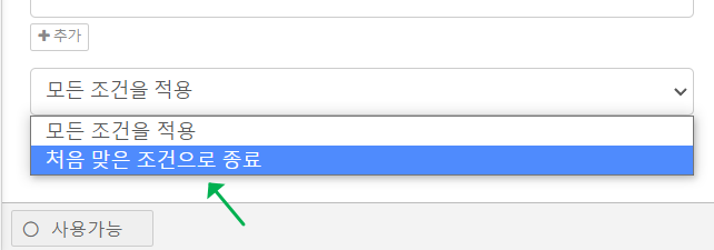 여기서 만약 아래 이미지처럼, 처음 맞는 조건에서 더 이상의 하위 조건들을 검사하지 않고 종료할 수도 있는 옵션도 사용할 수 있습니다.