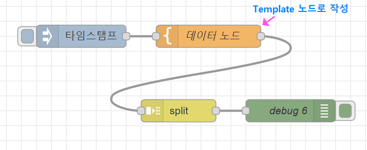 우선 아래와 같이 노드를 구성해주세요. "데이터 노드"는 "Template"노드를 이용하면 됩니다.