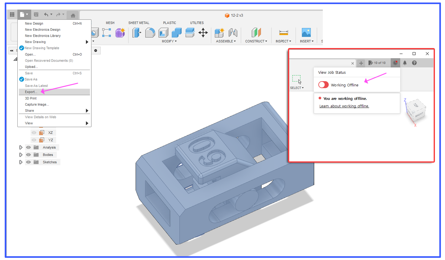 2) Fusion360 오프라인 모드(네트워크 차단) 사용해 보고 가기! (파일 저장 방법 확인)