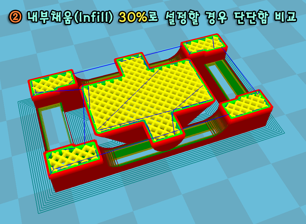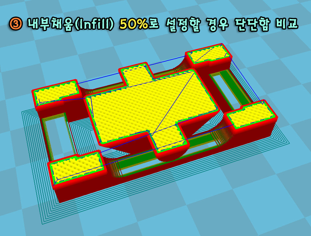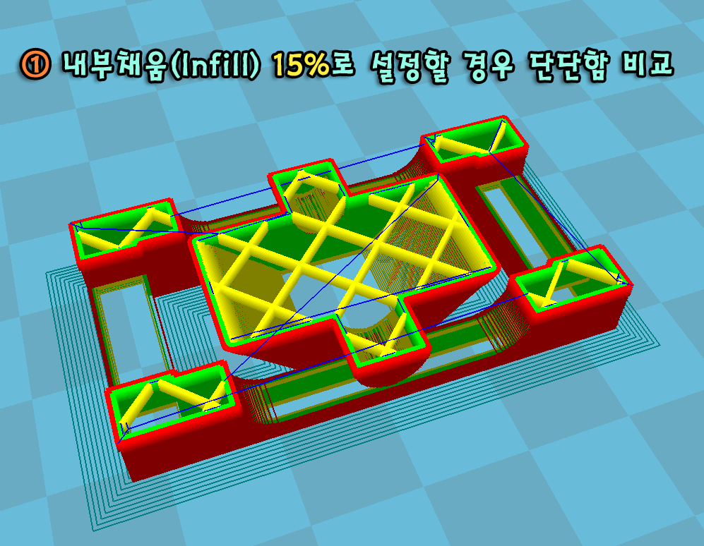 3) 내부채움(Infill) 설정을 단단하게 하기! (1 과제 슬라이서 툴에서 작업해야 함)
