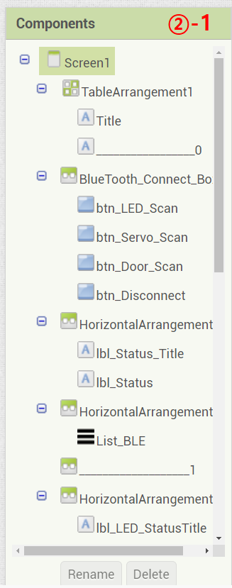 ① 번의 디자인에 해당하는 Components 구성은 아래 ②번과 같습니다.