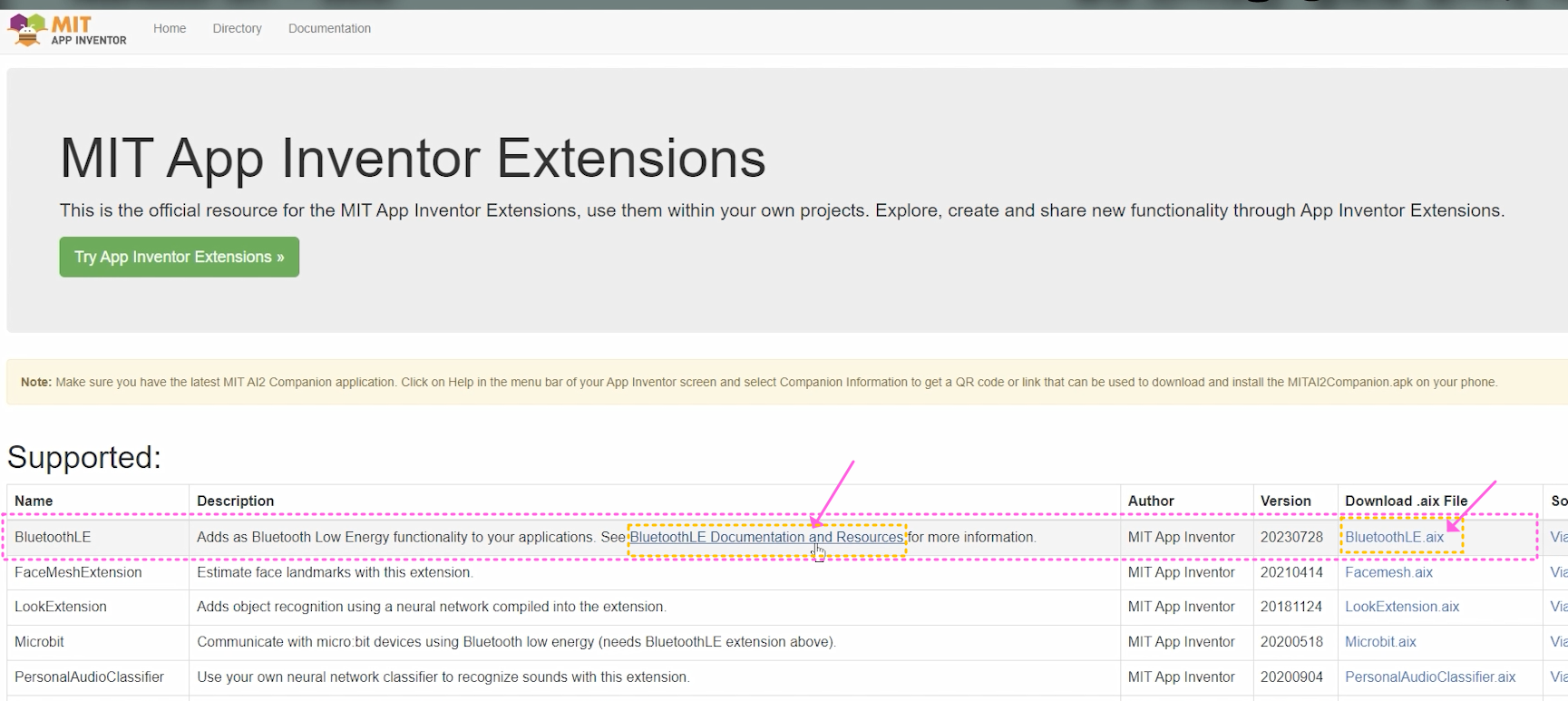 그럼, 확장 패키지를 다운로드하기 위해 앱인벤터 사이트 또는 구글 검색으로 “Bluetooth LE” 또는 “BLE”라고 검색해 보세요. (아래)