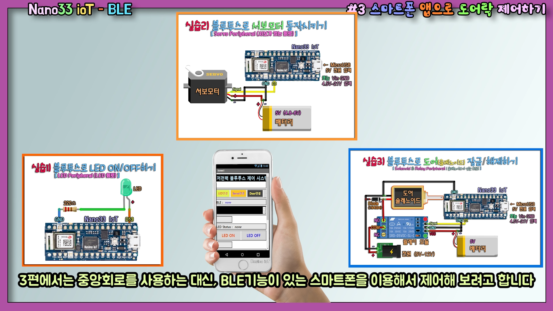 5. 【 아두이노Nano33#4】 NANO 33 IoT BLE 저전력 블루투스 사용설명서 #2 (BLE로 도어락 솔레노이드 제어하기)