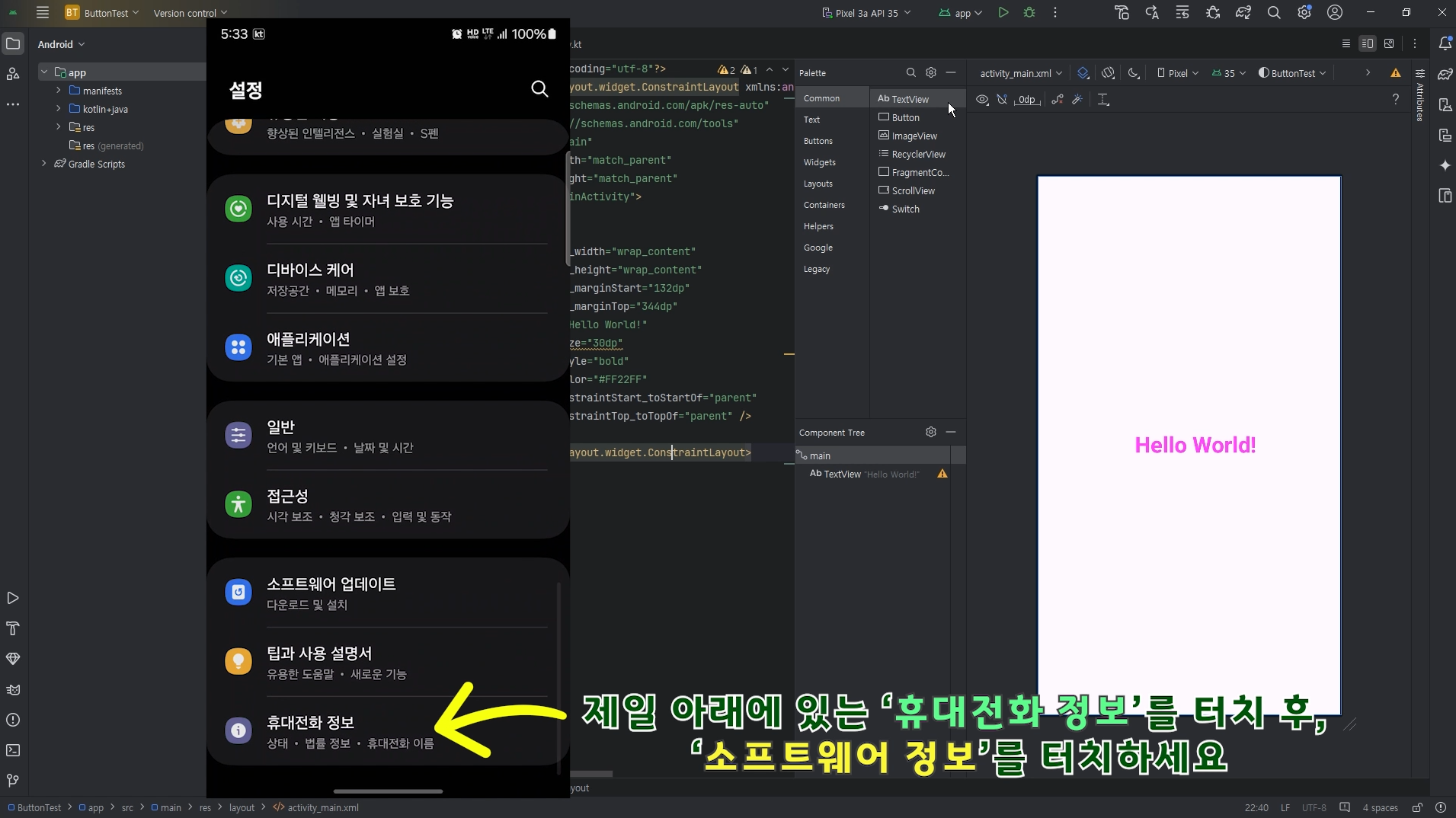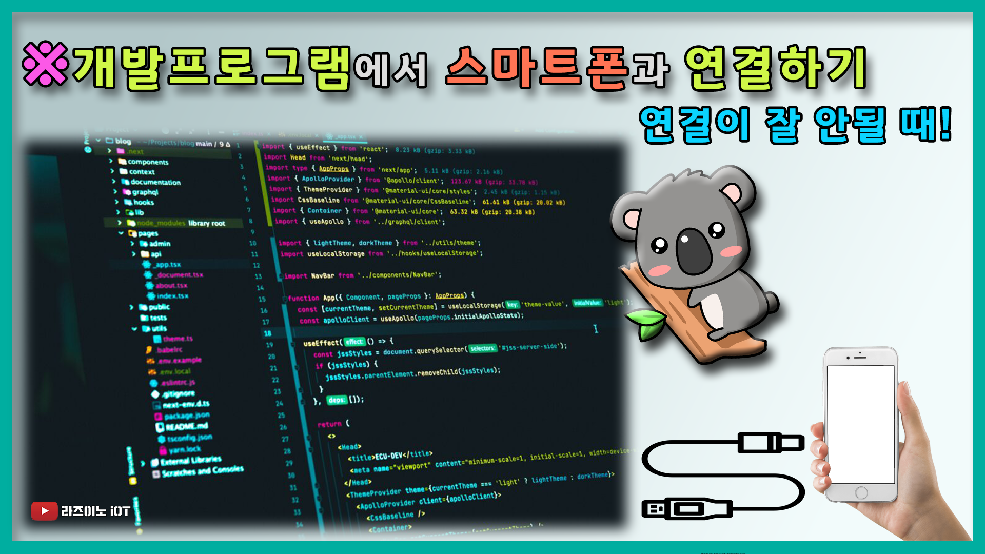 - 안드로이드 스튜디오와 같은 개발프로그램에서 스마트폰과 연결하는 방법과