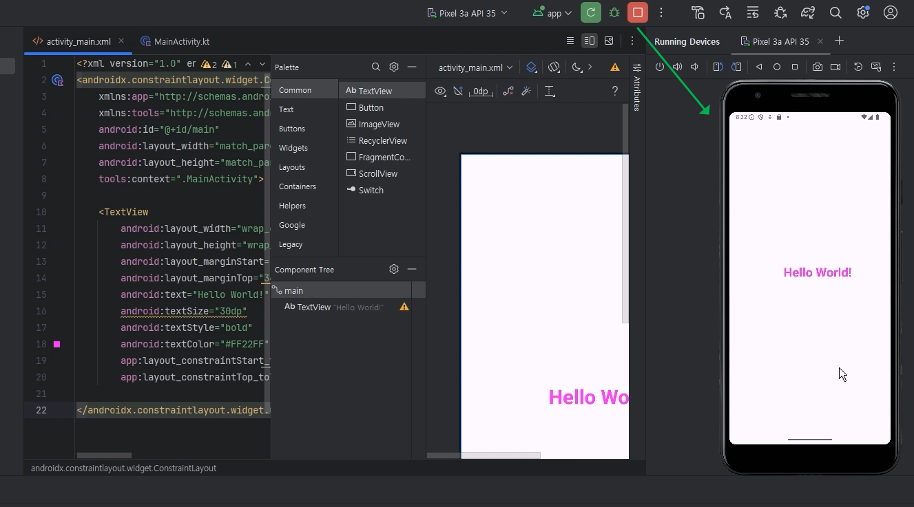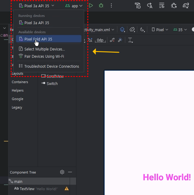 픽셀이라는 가상 디바이스로 실행이 잘 되었네요.