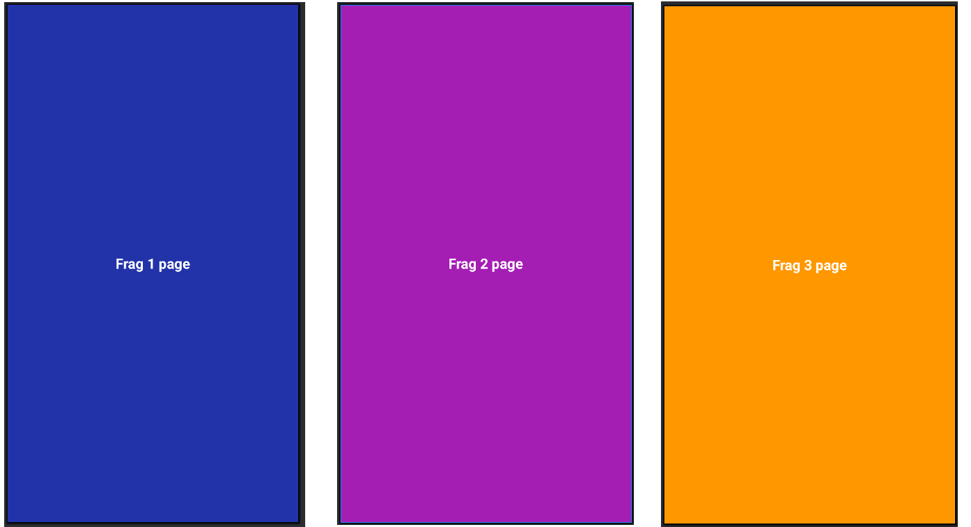 → 각각의 프래그먼트 화면을 아래처럼 단순하게 배경색을 변경하여 구성하고, 추후에 이미지를 넣거나 다양하게 응용하면 됩니다.