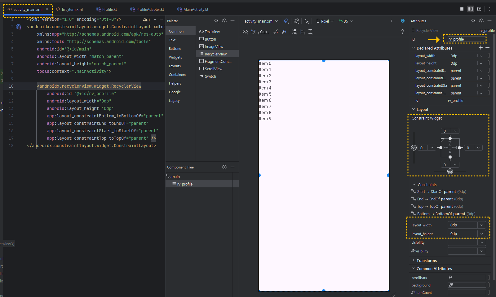 리사이클러 뷰의 id는 rv_profile로 할게요.