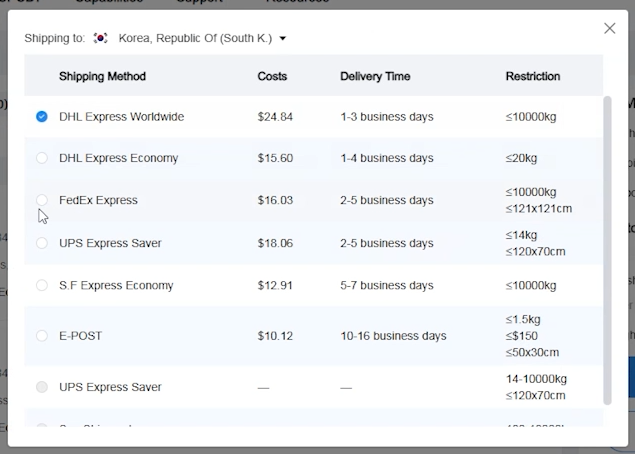 DHL economy로 주문했고 매우 빠르게 배송받을 수 있었어요