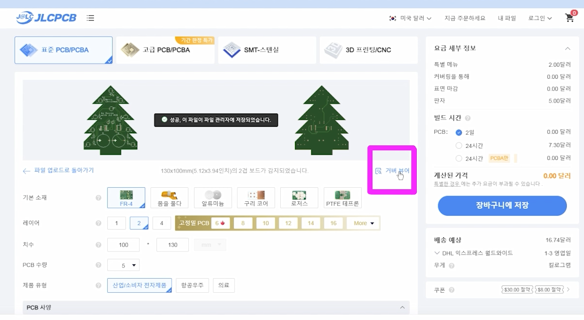 3. 업로드가 완료되면 보드 디자인을 미리 볼 수 있는 거버뷰어를 제공해요(클릭).