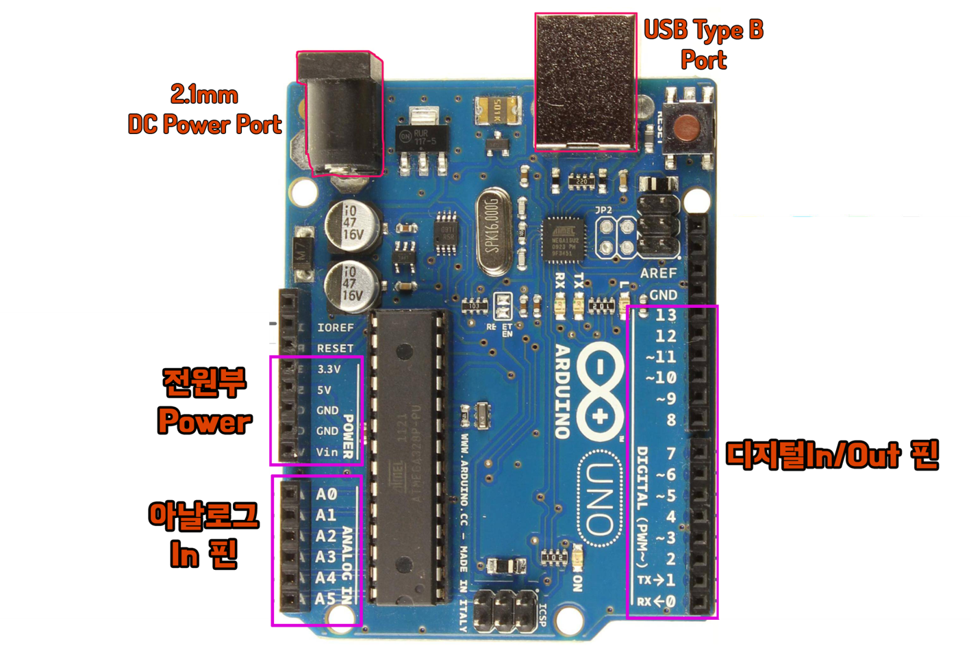 아두이노를 가지고 본격적인 제어를 하기전에 먼저 보드 구조에 대해 설명 드립니다.