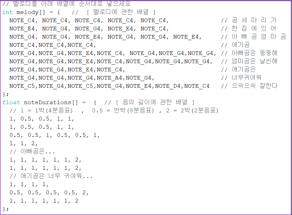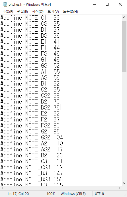 이것을 Pitches.h 헤더파일을 참고해서 코드로 적으면 아래와 같습니다.